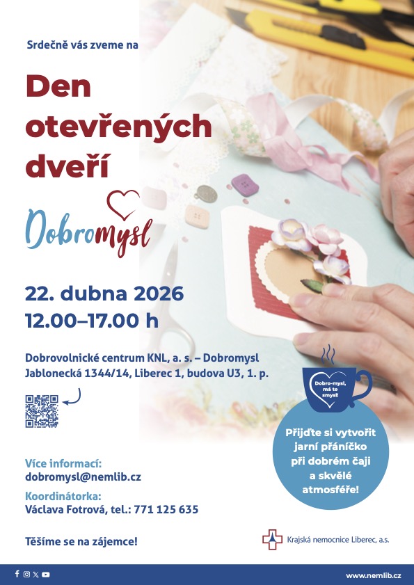 Jste dobré mysli? Přijďte mezi nás jako dobrovolník! V případě zájmu pište na e-mail dobromysl@nemlib.cz.