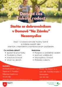 Srdečně zveme budoucí dobrovolníky i širokou veřejnost na příjemné odpoledne v zahradě Domova „Na Zámku“ Nezamyslice.